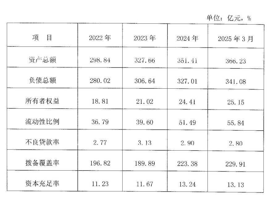 作为一家在地方经济中发挥重要作用的金融机构,该行近年来呈现出稳步发展的态势,资产规模持续扩张,2024年贵港农商银行的资产总额达到349.98亿元,增长率为7.28%;各项贷款余额为238.59亿元,增长率5.6%,贷款业务成效明显。盈利能力方面,2024年实现账面经营利润7.16亿元,同比增长3.77%;进入2025年,发展势头依然稳健,截至3月末,资产总额已达366.23亿元,负债总额341.08亿元,实现财务收入3.76亿元、净利润1.12亿元。